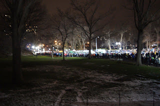 Jooksjate ja muidu piduliste jaoks oli olemas lava, kus dj mängis muusikat ja tantsijaid oli selle ees üsnagi palju. Linnapeal rahvast nagu alati palju, aga peale keskööd, meie üllatuseks, ei olnudki metroo väga täis. Mis veel aastavahetusest? Meil suurematsorti pidurooga polnud (polnud plaanitudki) aga selle eest õgisime eht ameeriklikult sõõrikuid ja uue aasta varajastel minutitel leidsime veel ühe avatud 7/11 (pood, mitte kuupäev) ja õgisime krõpsu ka veel kahesuu poolega.